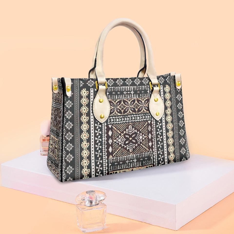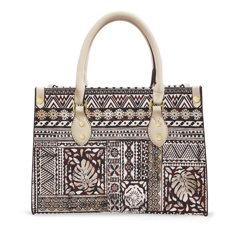Borsa a Spalla Vintage con Design Floreale Polinesiano Samoa Tapa, Nuovissima Borsa Elegante da Donna con Manici Superiori