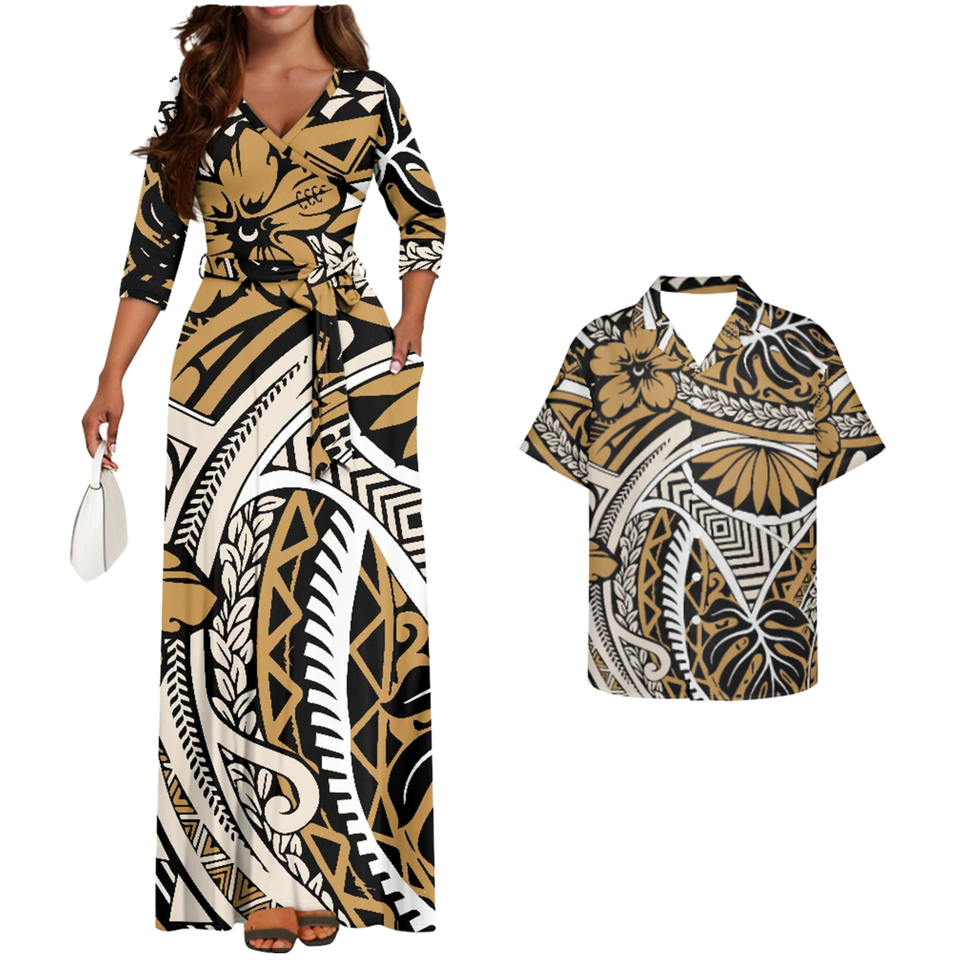 Disegno tropicale polinesiano abbigliamento coppia taglie forti abito Casual da donna camicie hawaiane da uomo isole pacifiche vestiti per le donne