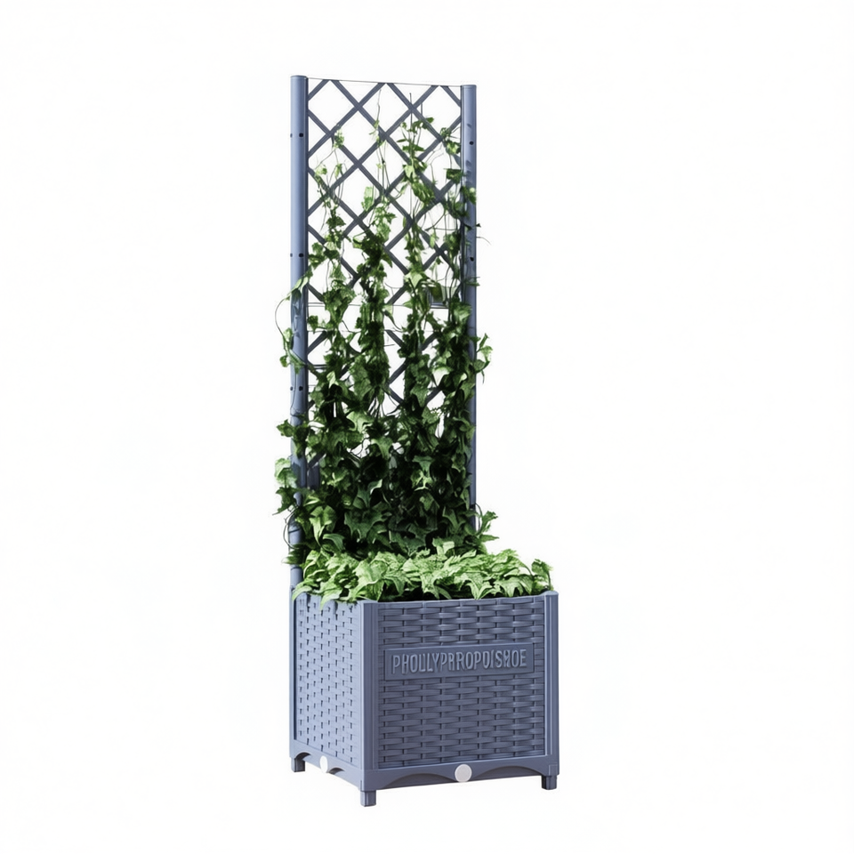 Fioriera da Giardino in Polipropilene, Design Moderno Quadrato, Colore Grigio, per Uso Esterno
