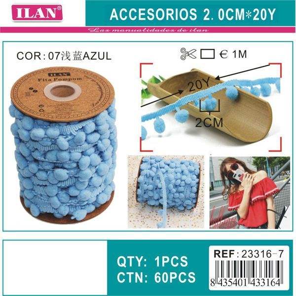 Nastro con pompon 2 cm x 18 m per artigianato e decorazioni