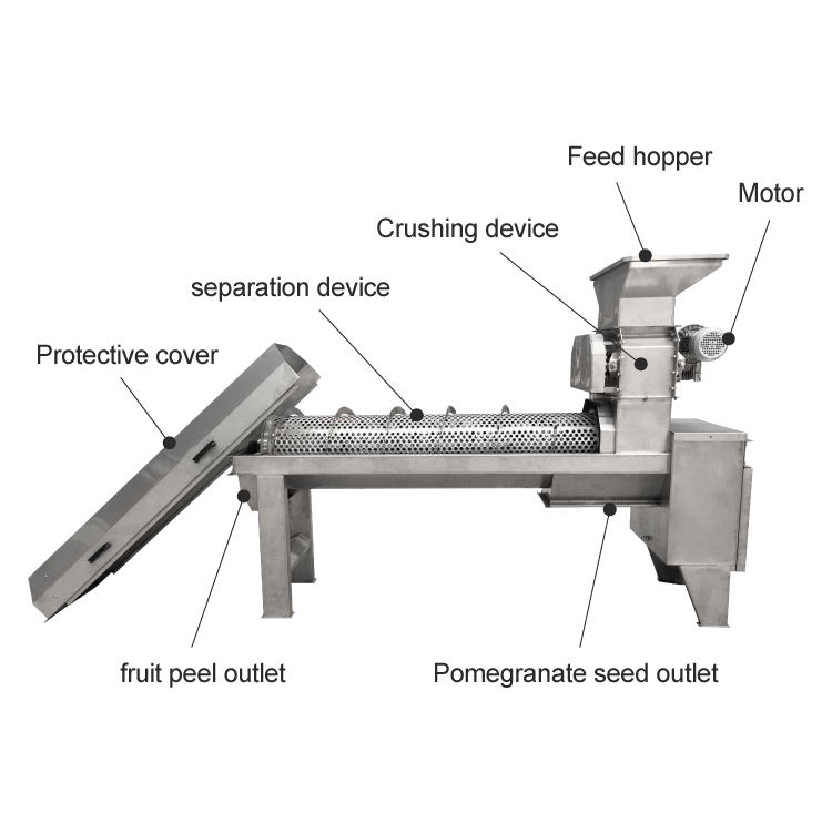 Funzione del macchinario:Pelatura automatica, Sbucciare i melograni, Rimozione della pelle, Lavorazione del melograno, Separare i semi, Separazione degli arilli