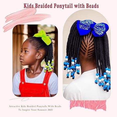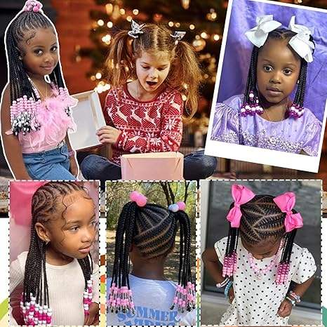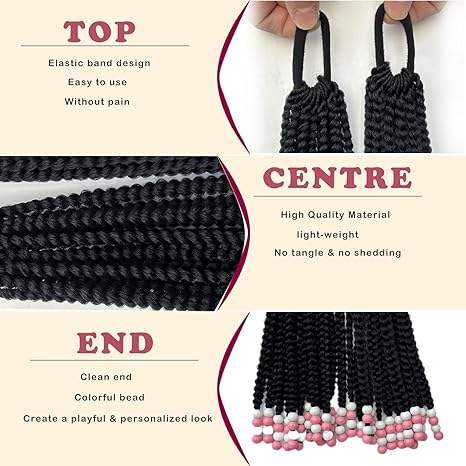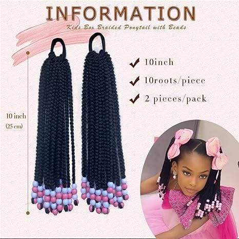 Extension per Coda di Cavallo con Perline, Trecce con Perline per Bambine, Accessori per Capelli con Trecce Protettive per Ragazze