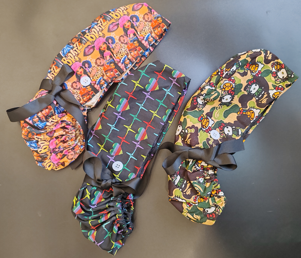 Cappelli da Infermiera con Coda di Cavallo, Fodera in Raso, Logo Personalizzato, Chiusura con Laccetti e Bottoni per Uso Ospedaliero