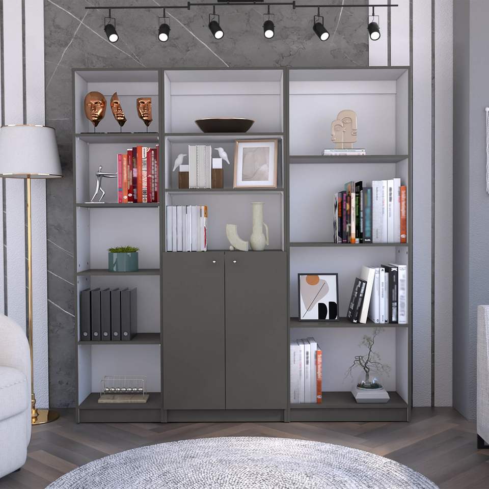 Set di Librerie Poole a 3 Pezzi Grigio Opaco/Bianco, Larghezza 67 Pollici con 12 Ripiani e Armadio a 2 Ante per Soggiorno