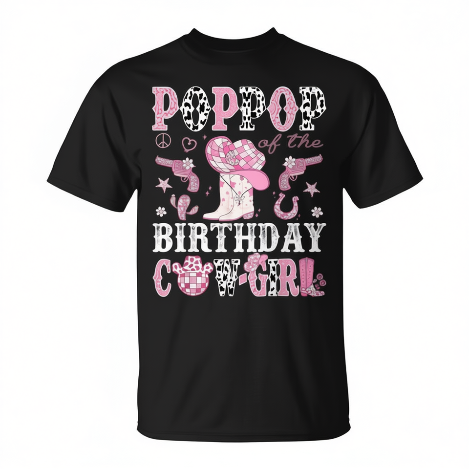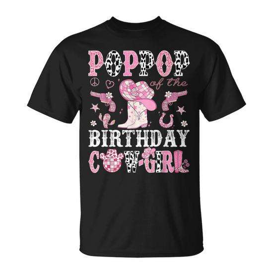 Pop Pop Of The Birthday Cow Girl T-shirt rosa stile western