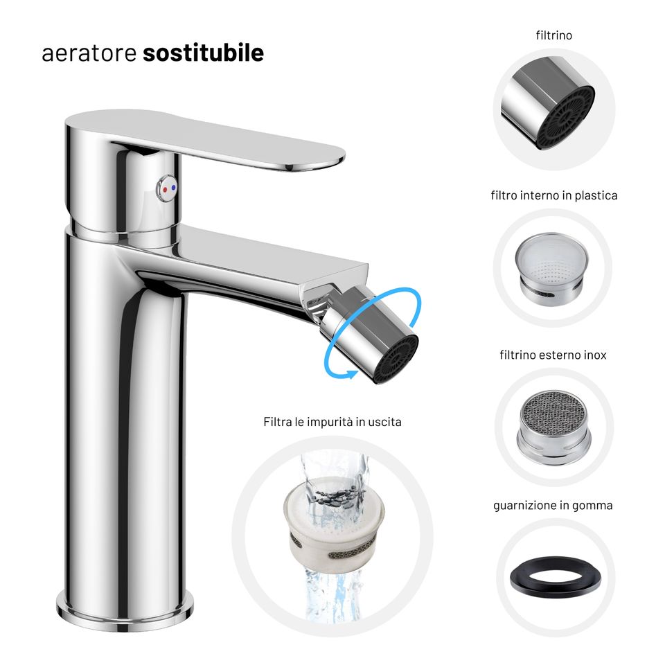 Rubinetto per Bidet a leva singola serie Pop cromato lucido con confezione da 1