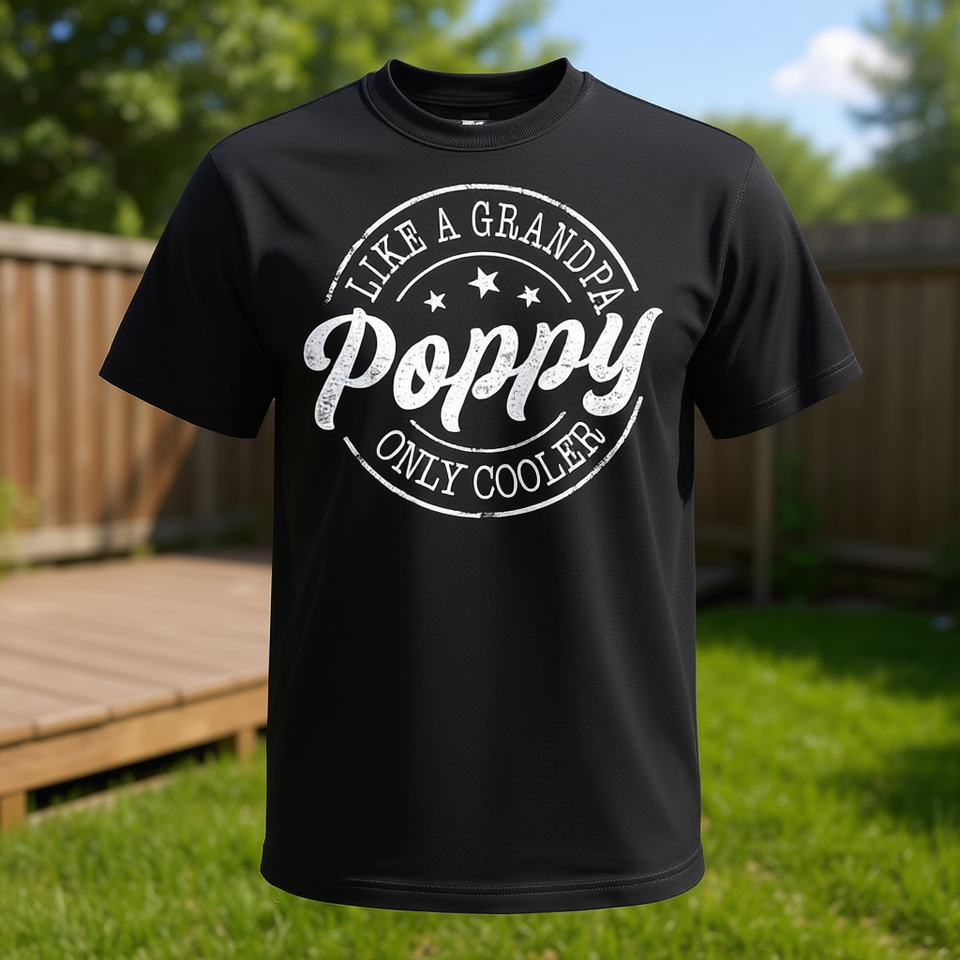 T-shirt da uomo con stampa Poppy Like A Grandpa Only Cooler, regalo per la festa del papà