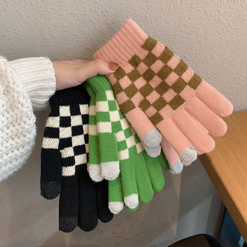 Guanti da Smartphone Touch a scacchi caldi invernali a maglia a freddo per schermo cellulare guanti termici da esterno in pile