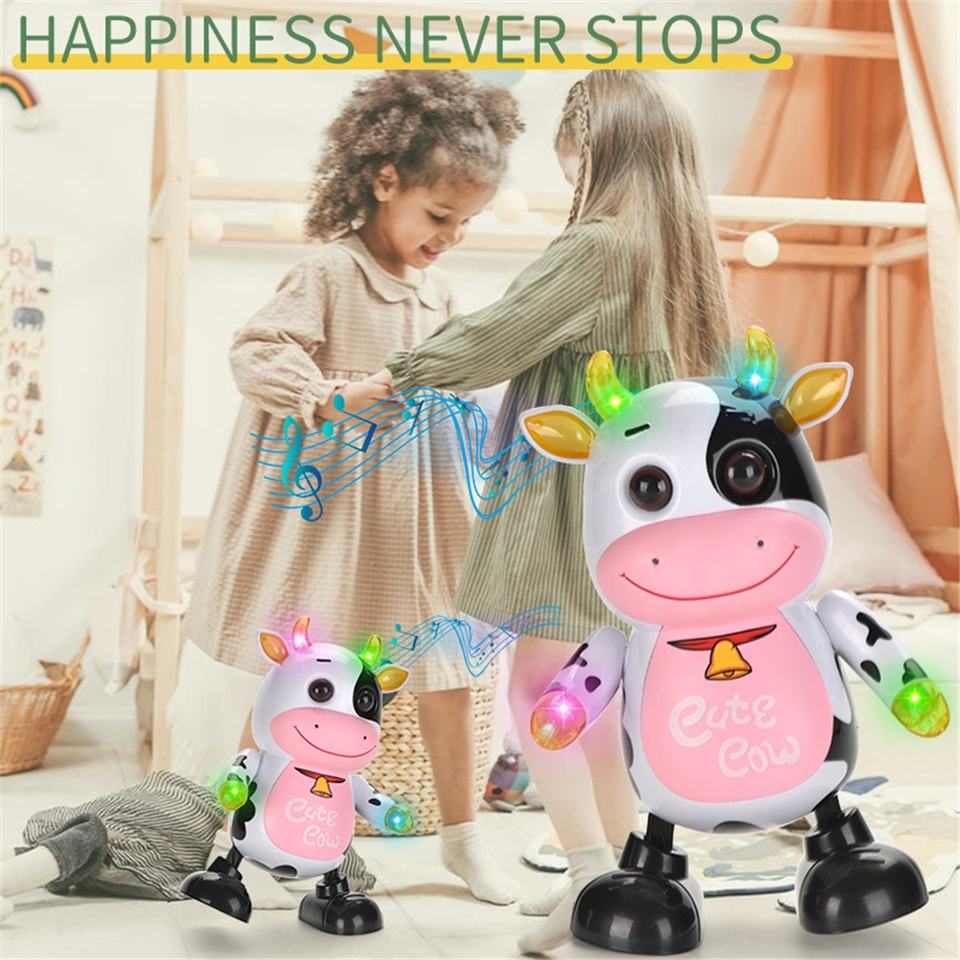 Popolare bambini animale carino canto elettrico incandescente lampeggiante musicale robot danza mucca giocattolo per i bambini
