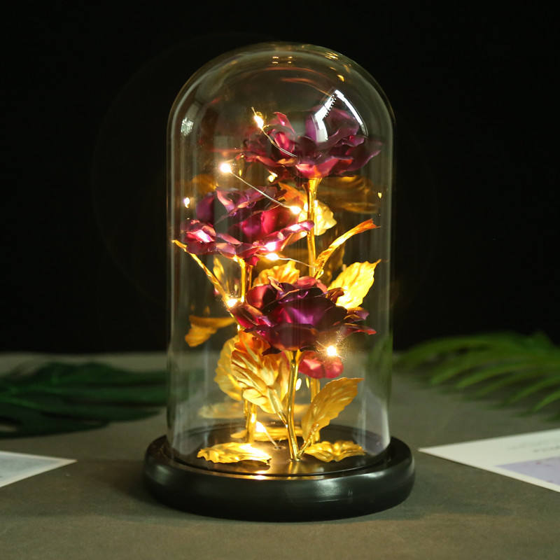 Fiori di rose galassie 24K conservati con luce a LED