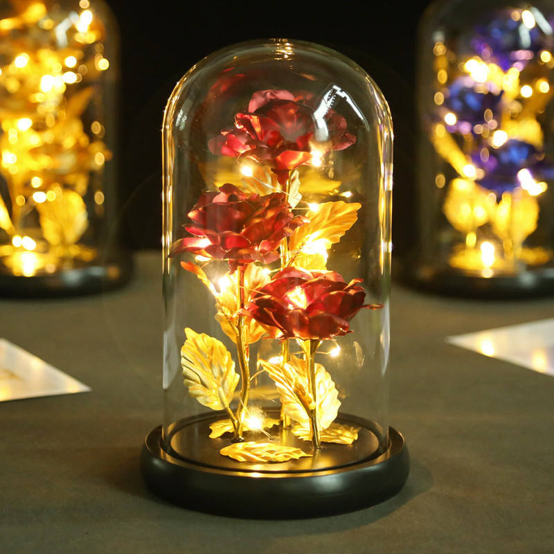 Decorazione popolare conservata fiori di rose galassie 24K con luce a LED regalo per la festa della mamma