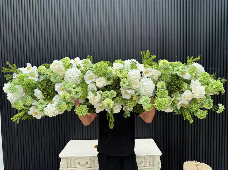 Artificial green hydrangea wedding flower runner