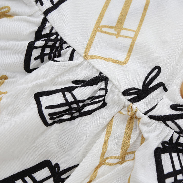 Vestito Estivo alla Moda per Bambina con Bottoni a Corno e Vita Elastica, 6 Mesi