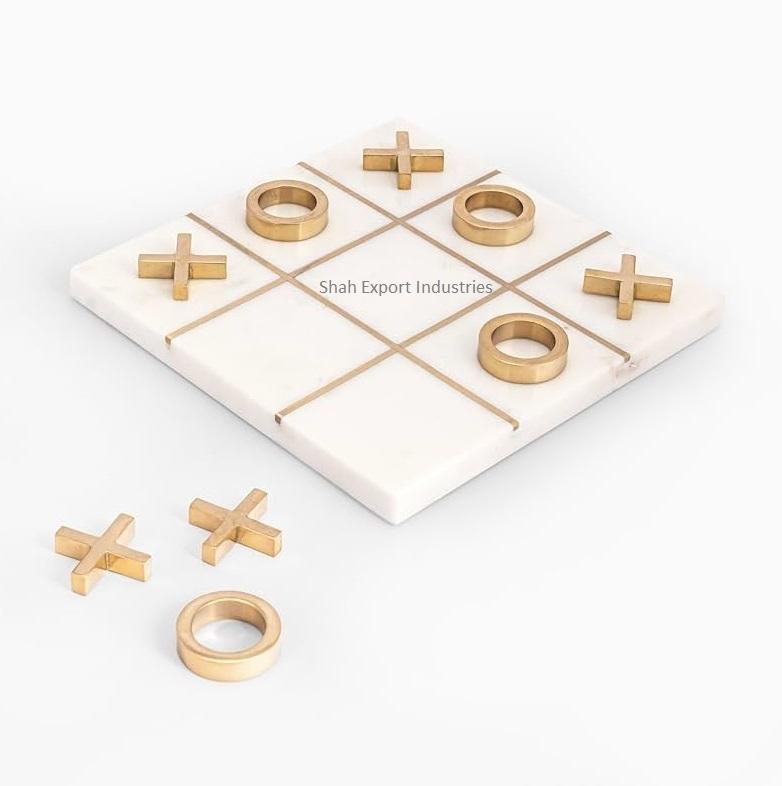Popolare di lusso elegante in marmo Tic Tac Toe gioco da tavolo con intarsio in ottone eco-friendly personalizzato gioco di famiglia per gioco al coperto
