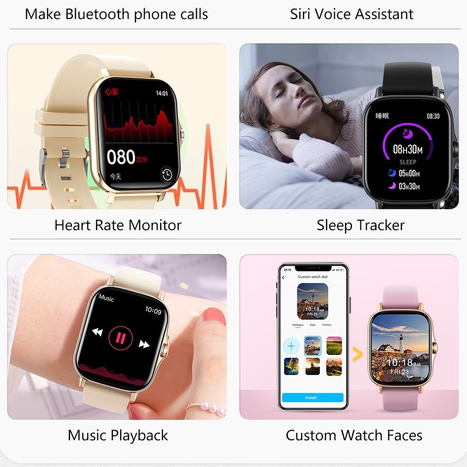 Calendar, Alarm Clock, Power Reserve, Remote Control, Countdown, Noctilucent, Sleep Tracker, Speed Measurement, Fitness Tracker, Passometer, Call Reminder, Answer Call, Push Message, Mood Tracker, Message Reminder, Dial Call, Altitude Meter, Heart Rate Tracker, Gps Navigation, Activity Tracker, Voice Call, Breath Monitor, Distance Tracker, EMAIL, Music Player, Sedentary Reminder, AI voice assistant, WORLD TIME, Calculators, Prayer reminder