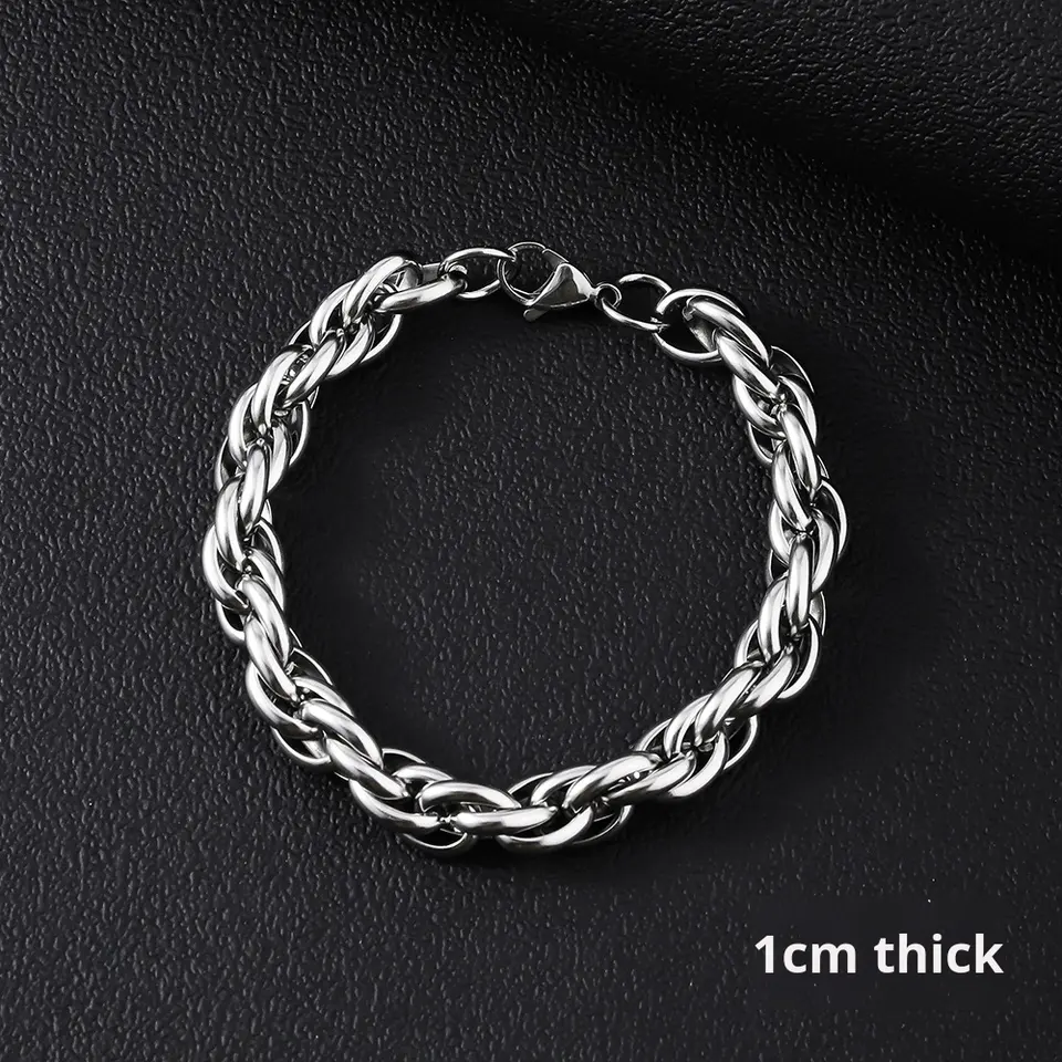 Popolare Bracciale da Uomo Semplice in Stile Punk di Alta Gamma a Catena Cubana in Acciaio al Titanio, di Tendenza in Acciaio Inossidabile a Forma di Farfalla di Ispirazione Buddista
