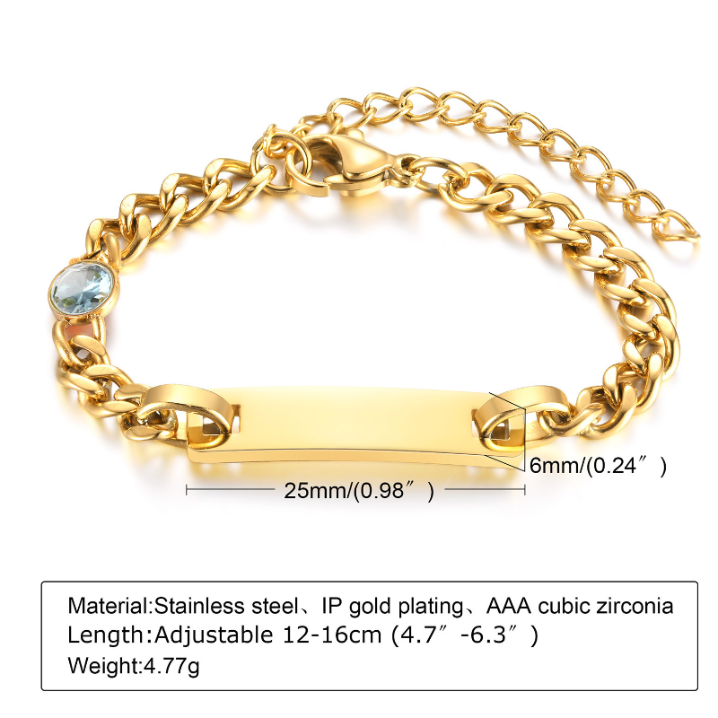 Nome del prodotto:Braccialetto per bambini in bianco curvo dodici birthstone in acciaio inossidabile