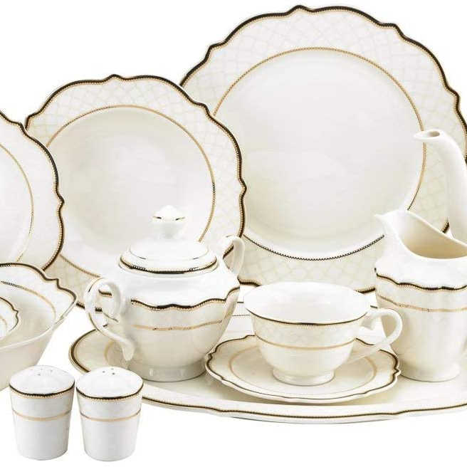 Porcelain 57-pieces Bone China Dinner Set / Dinnerware Set / Plate Set Service or 6