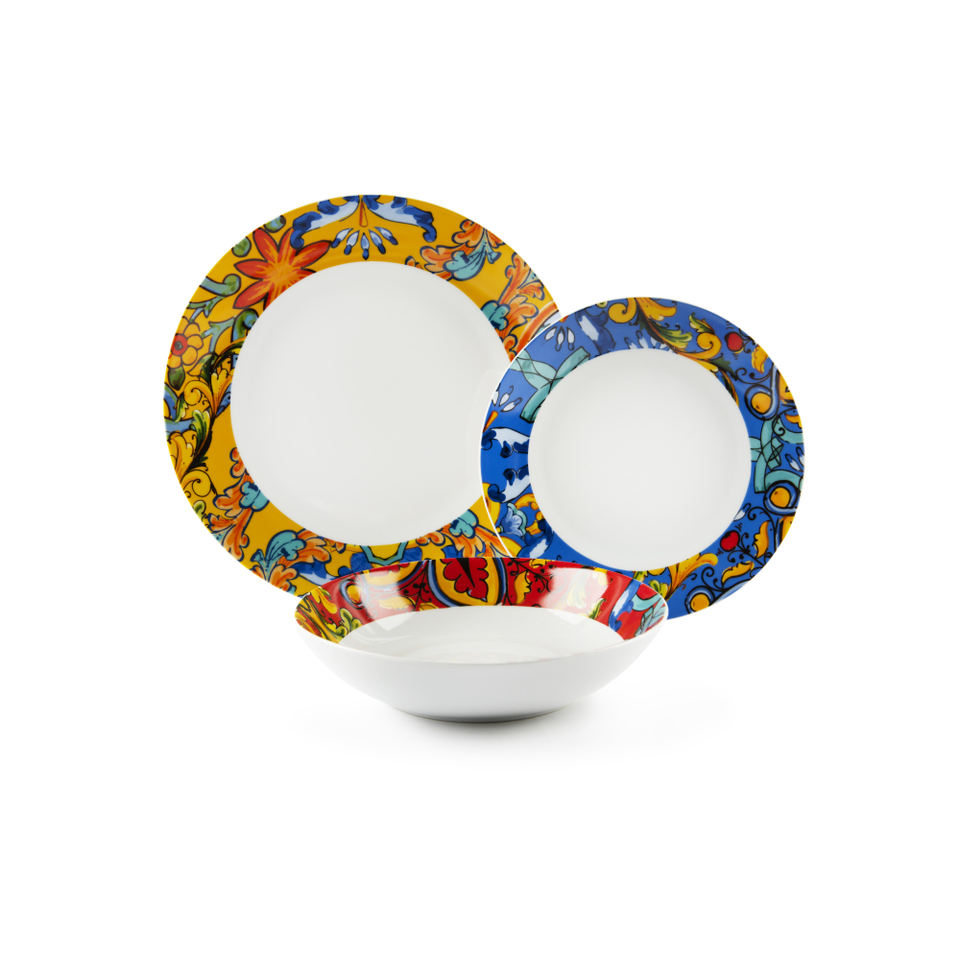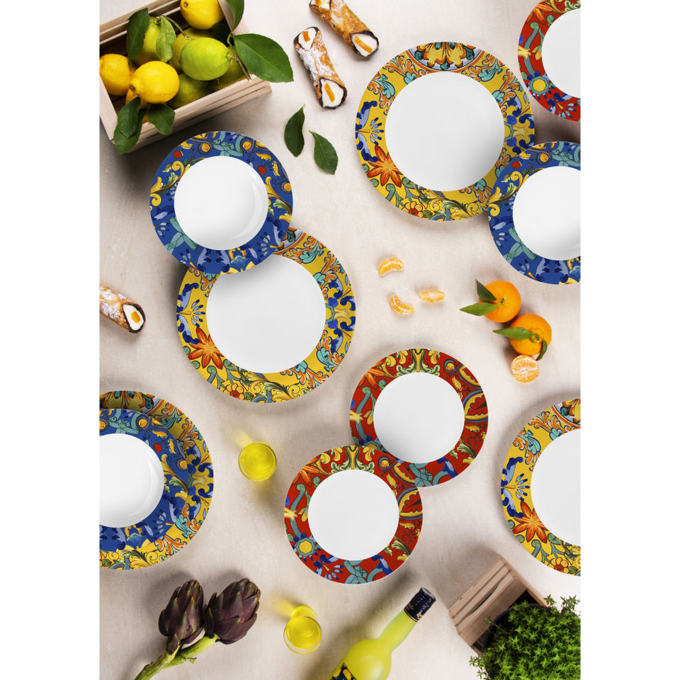 Porcelain Dinner Set 18 Pcs Mediterranean Handpainted Round Dishwasher Safe Party Dinnerware
