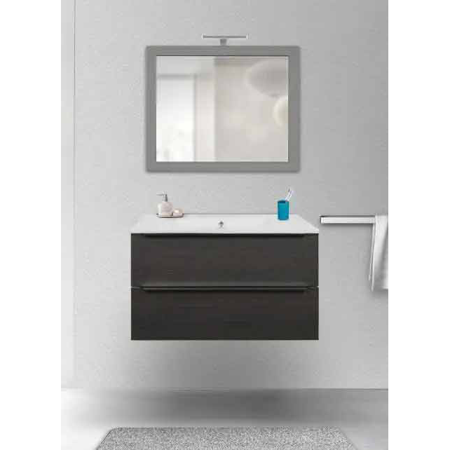 Mobile da bagno sospeso PORDENONE 2 cassetti, rovere scuro 80cm, lavabo in quarzimar