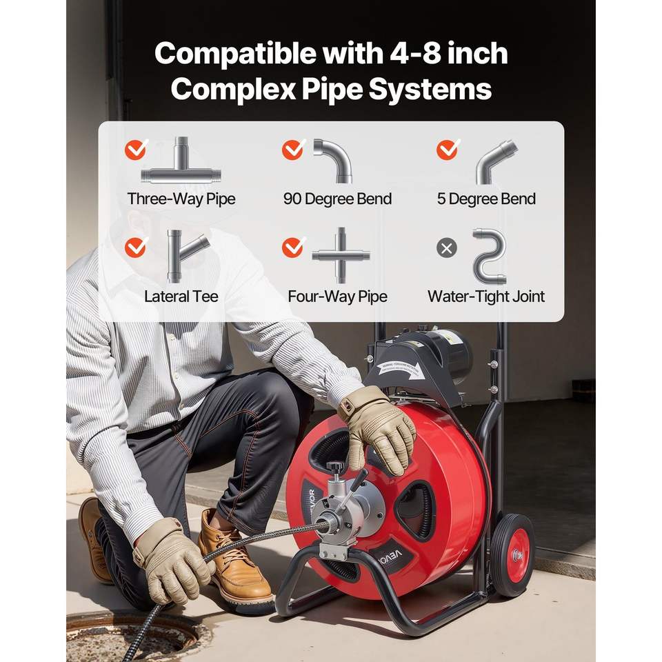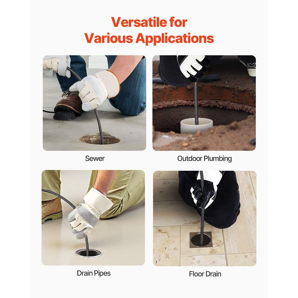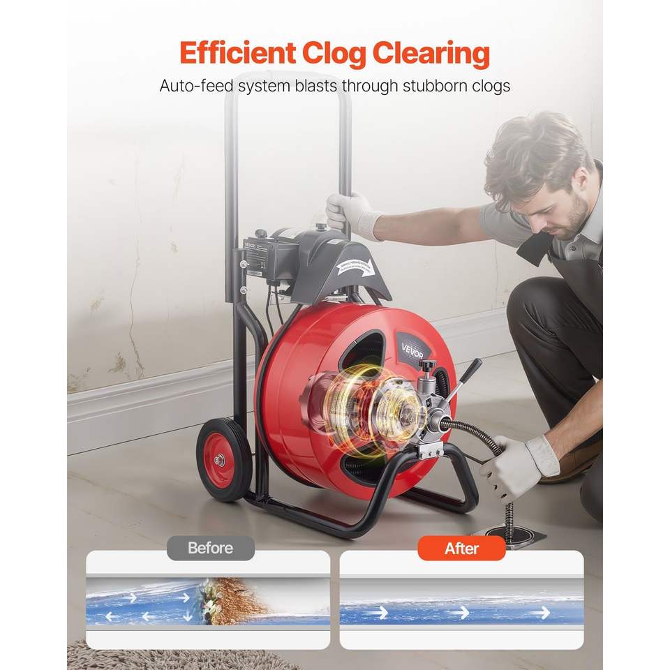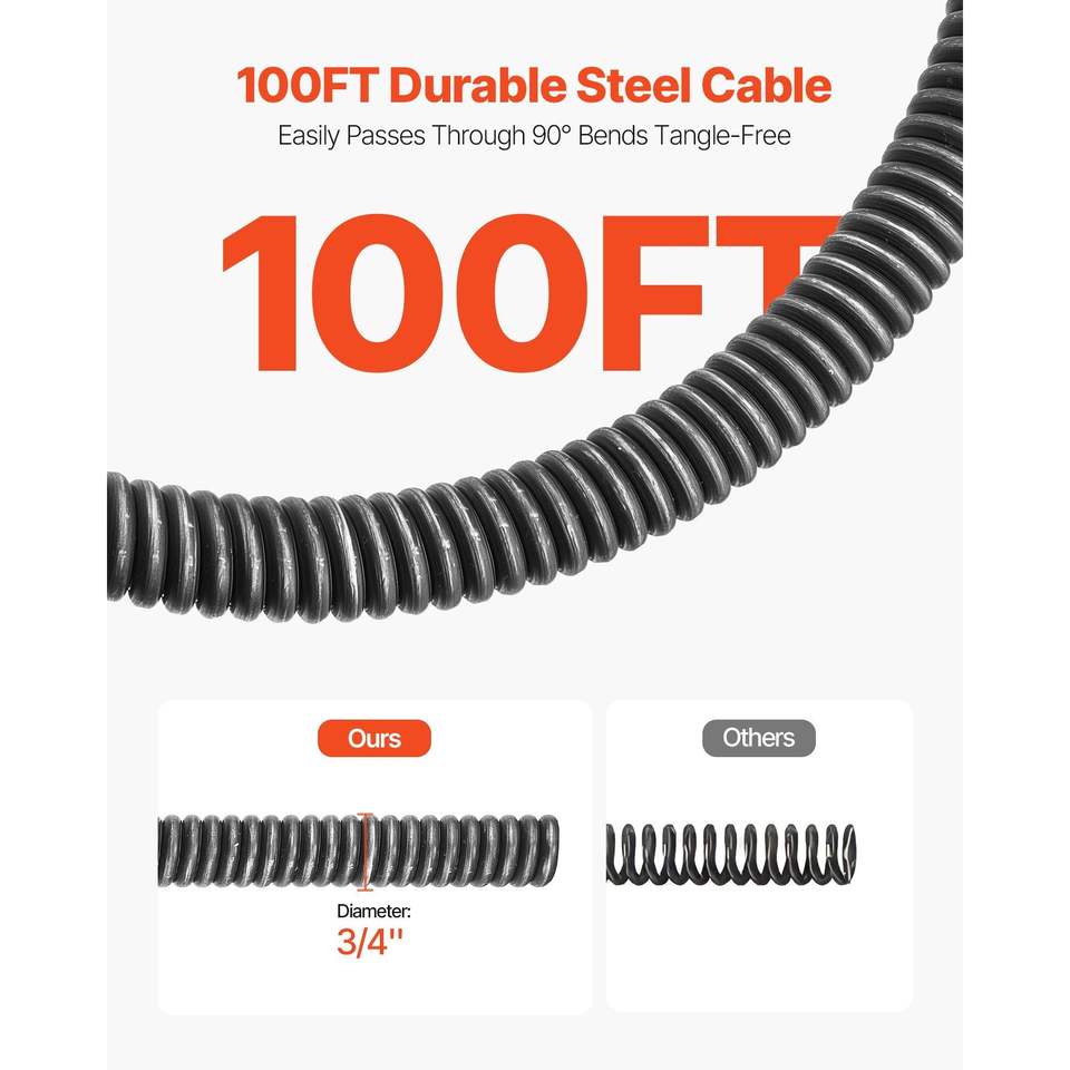 Macchina Portatile per la Pulizia degli Scarichi con Ruote a Spirale da 100 FT X 3/4 Pollici e 4 Lame, Alimentazione Automatica