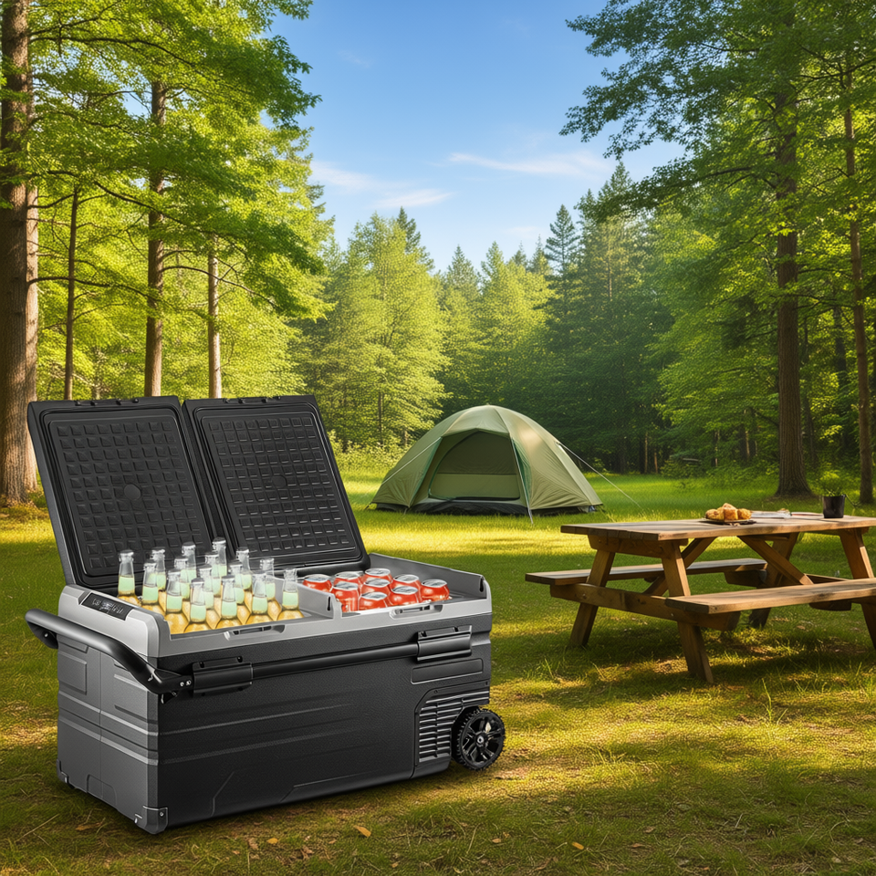 Portable 100 Quart Car Refrigerator Dual Zone Compressor Fridge Freezer 12V 24V AC 100-240V Outdoor Camping Cooler