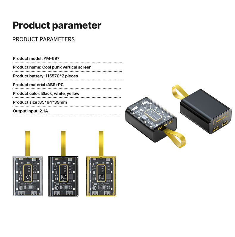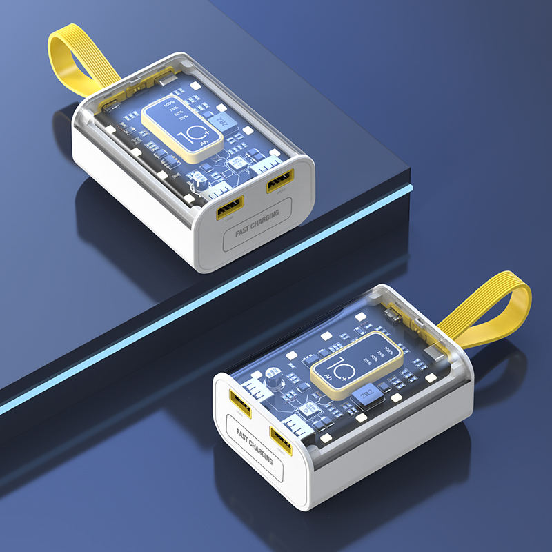 Power Bank Portatile 10000mAh/20000mAh Ricarica Rapida Caricabatterie Integrato per Telefono Cellulare Trasparente con Funzione Impermeabile