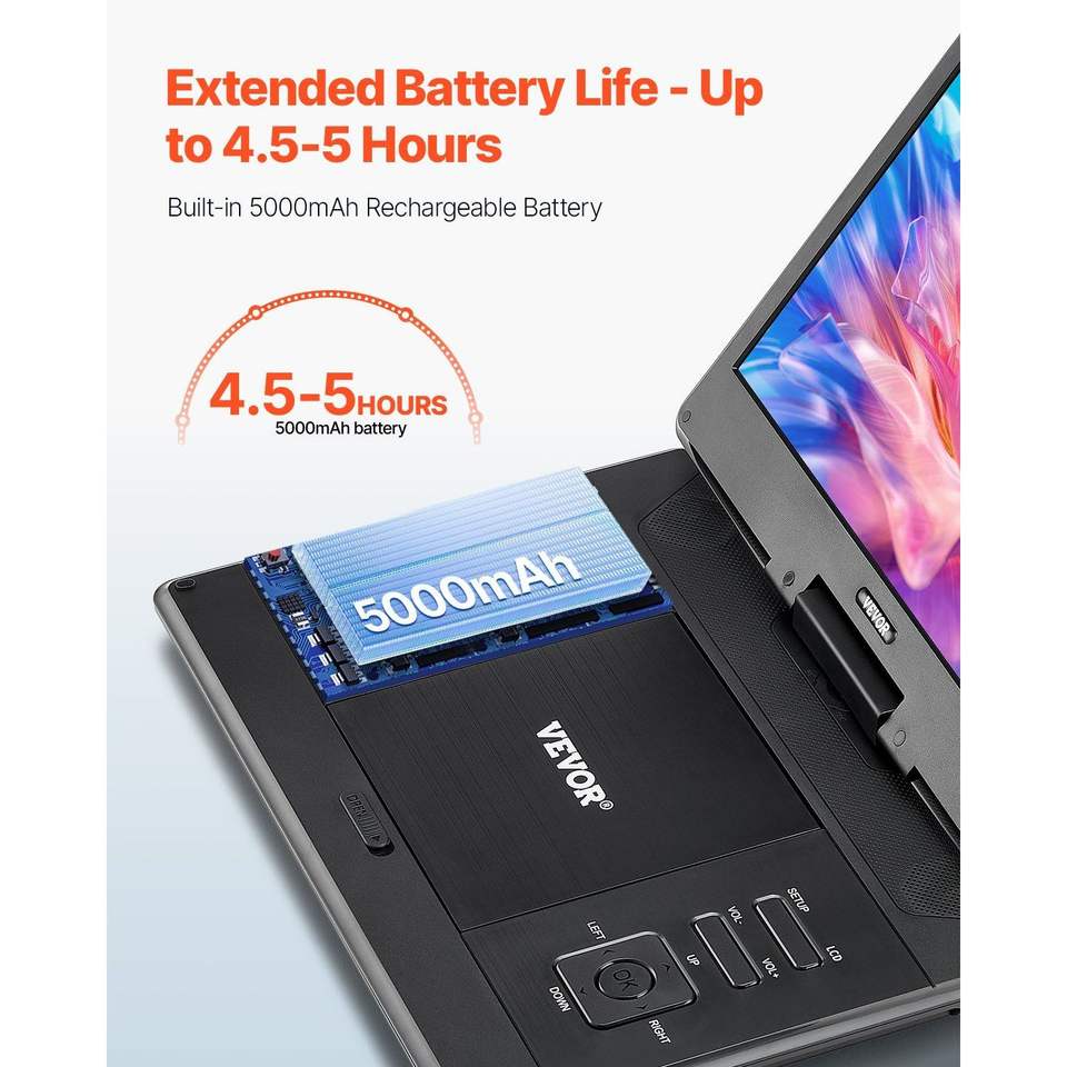 Schermo Portatile HD Girevole da 14 Pollici per Lettore DVD con Batteria Ricaricabile Integrata da 4,5-5 Ore e Supporto Dual Sync T