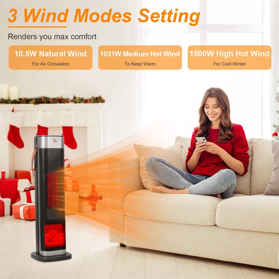 Riscaldatore Portatile Smart da 1500W per Casa, Termostato Regolabile, Oscillazione a 90 Gradi, Protezione da Surriscaldamento in Ceramica PTC