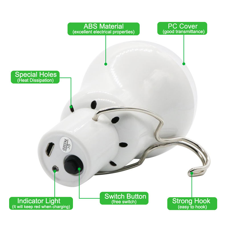 Nome del prodotto:Lampadina solare a LED per tenda da campeggio