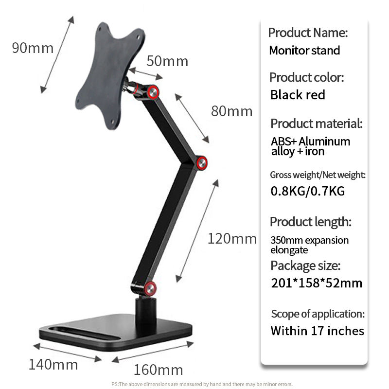 Supporto per schermo portatile 17.3 "supporto per Monitor VESA regolabile in altezza supporto per Monitor da scrivania pieghevole funzione nuova