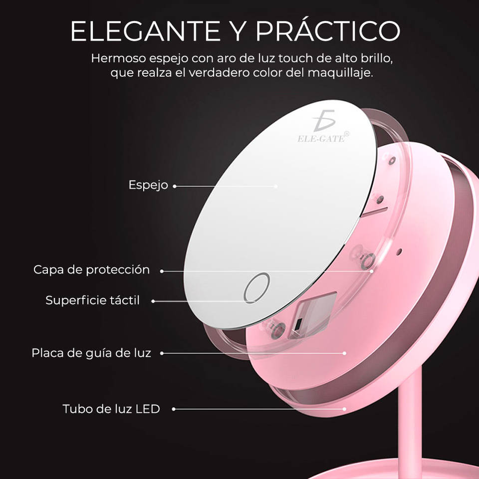 Specchio per il Trucco Portatile da 17,5 cm con Anello Luminoso LED Stile TikTok, Realizzato in Plastica Resistente