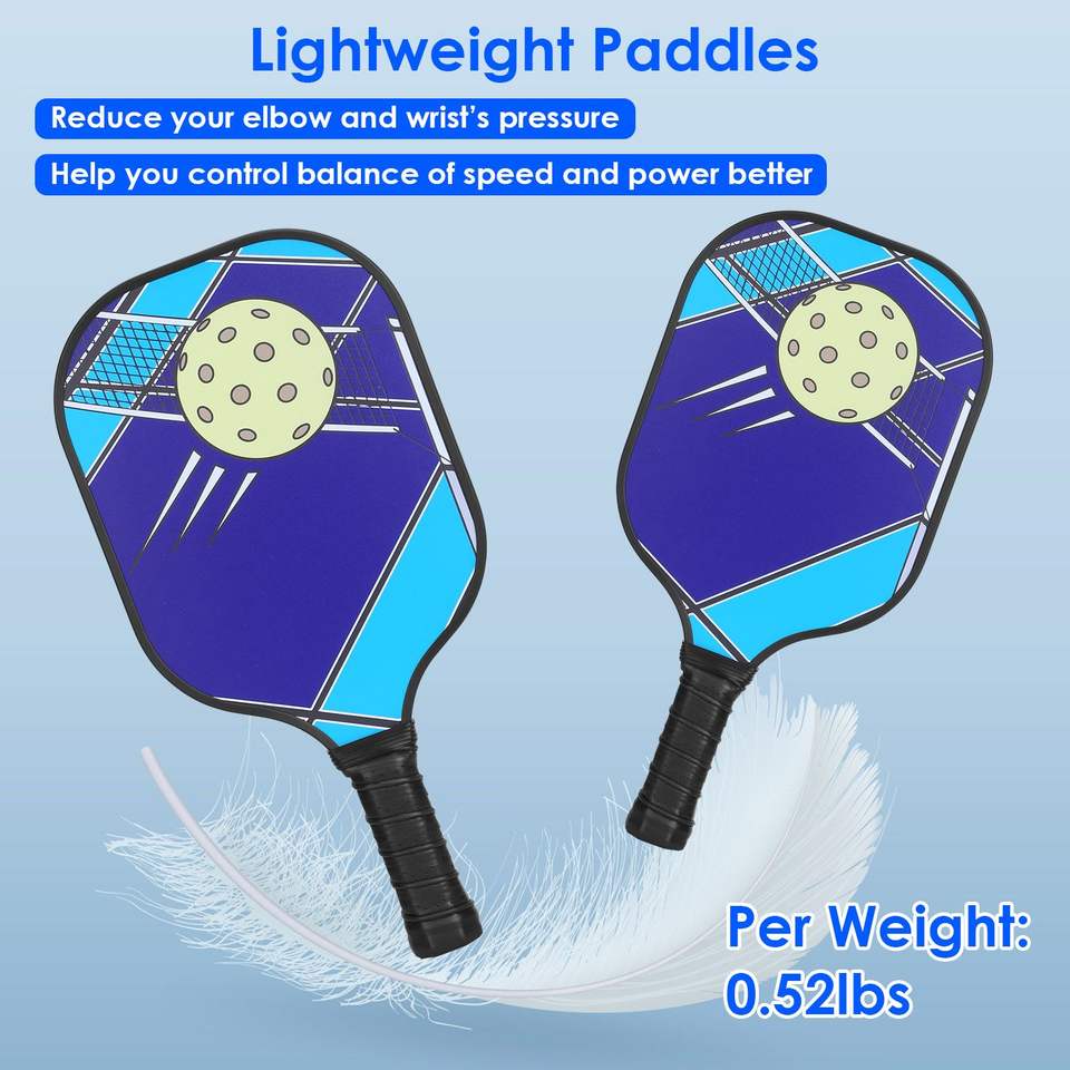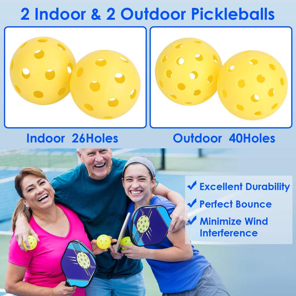 Set Portatile da Pickleball 1 Pezzo con 2 Racchette Ergonomiche Leggere in Fibra di Vetro, 4 Palline per Interno/Esterno, 2 Asciugamani Rinfrescanti in Borsa da Trasporto