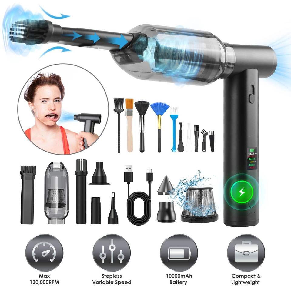 Soffiatore d'Aria Portatile Senza Fili con Batteria da 1WmAh, Aspirapolvere con Motore Brushless da 130000RPM, Velocità Variabile Continua