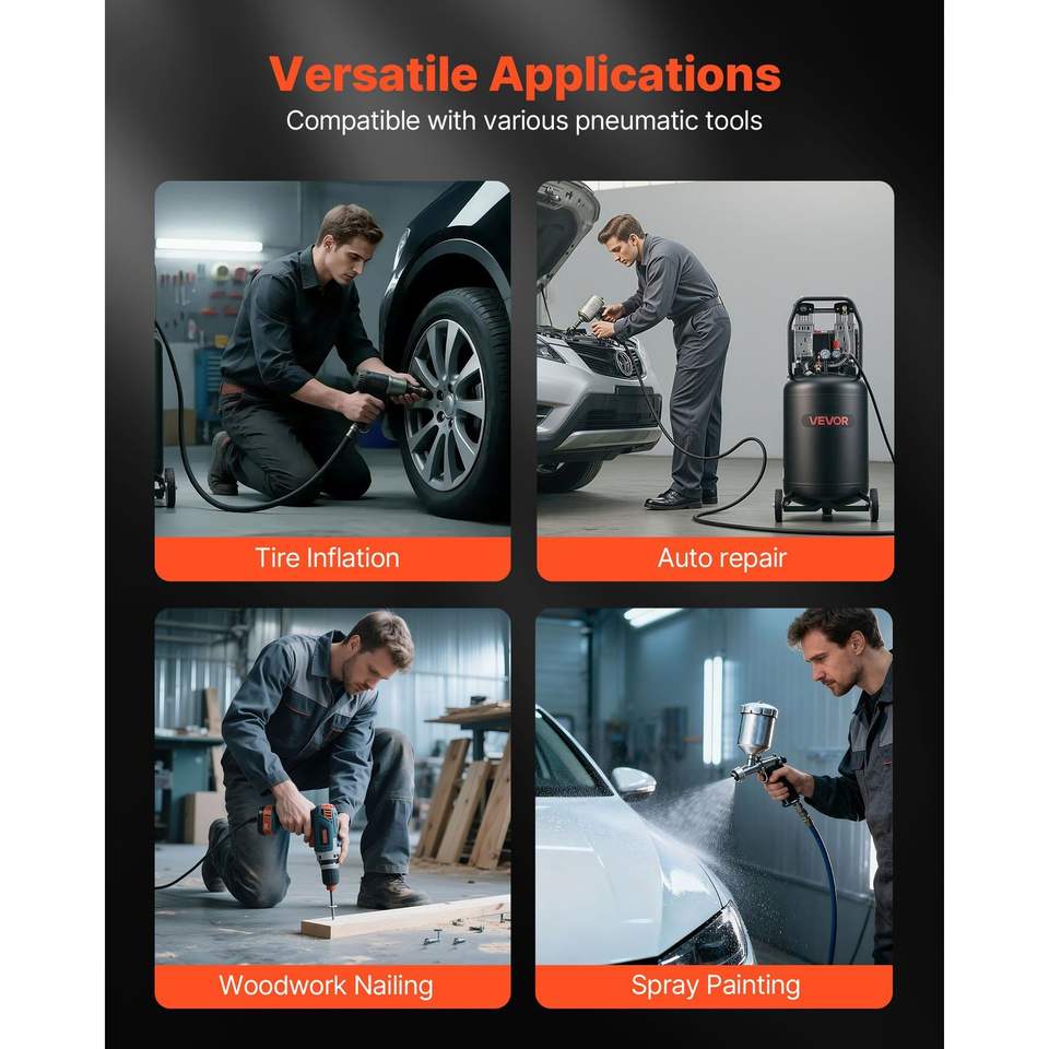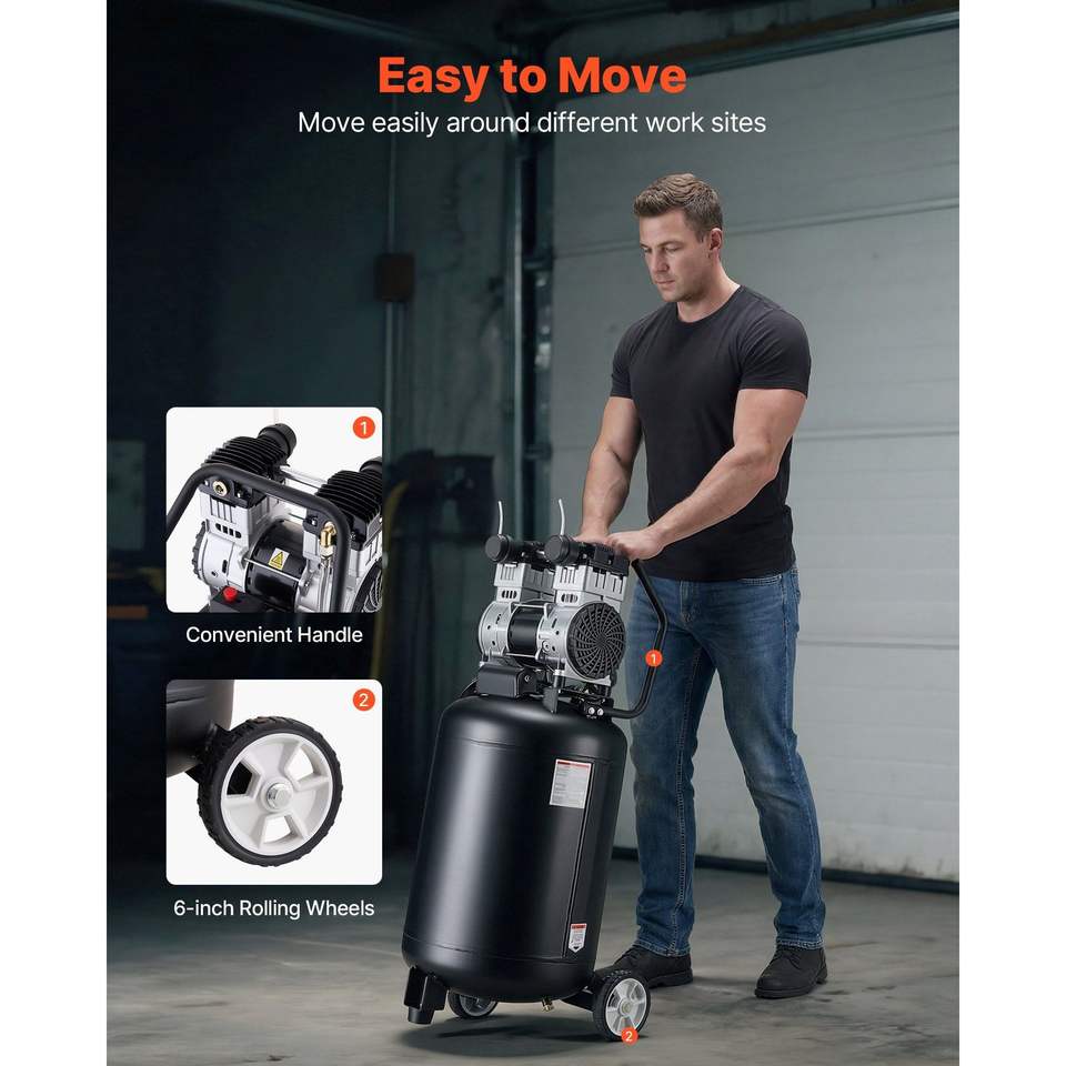 Compressore d'aria portatile da 20 galloni con 2HP 4.5 SCFM 90PSI, senza olio, pressione massima 125PSI, compressori per pneumatici con ruote portatili
