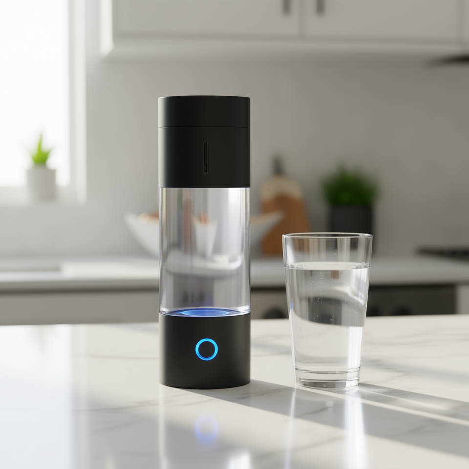 Bottiglia d'Acqua Idrogenata 230ml con Tecnologia SPE, Concentrazione di Idrogeno >15000ppb, Generatore da Tavolo per Uso Domestico in Acciaio Inox USB