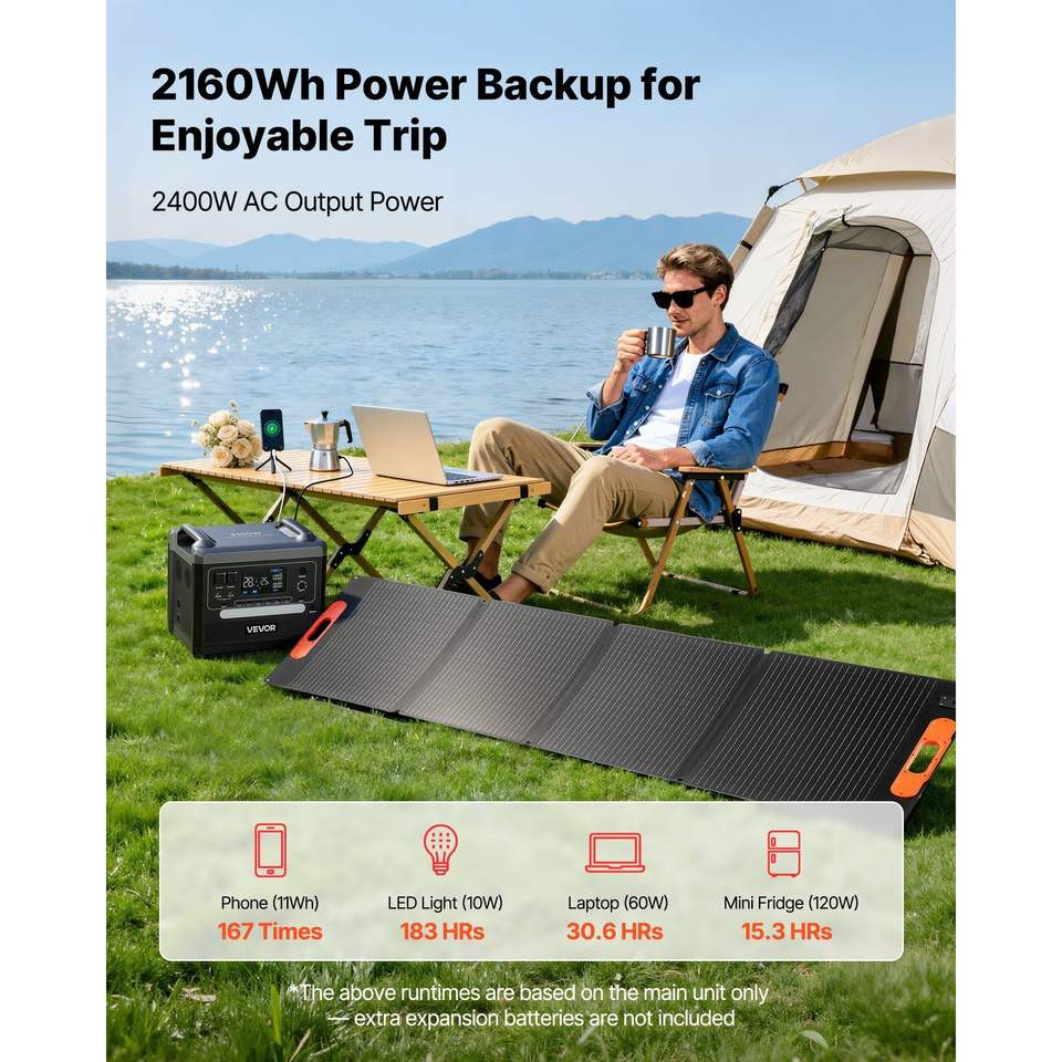 Stazione di Alimentazione Portatile 2400W con Pannello Solare Pieghevole 200W, Batteria LiFePO4 Espandibile 2160Wh, Generatore Solare ad Alta Capacità