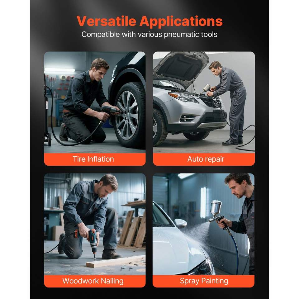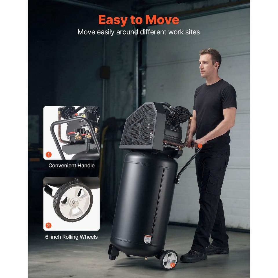 Compressore d'Aria Portatile da 25 Galloni, 5.5 SCFM, 90 PSI, Serbatoio Lubrificato a Olio, Pressione Massima 200 PSI, 5.5 SCFM