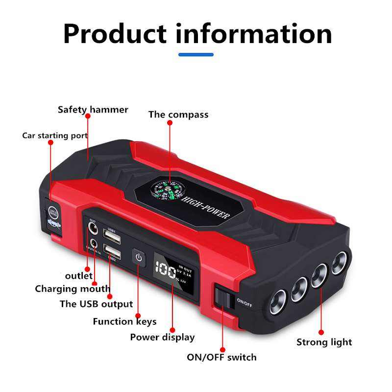 Avviatore di Emergenza Portatile per Auto 28000mA con Caricabatterie e Luce LED per Veicoli 12V Diesel
