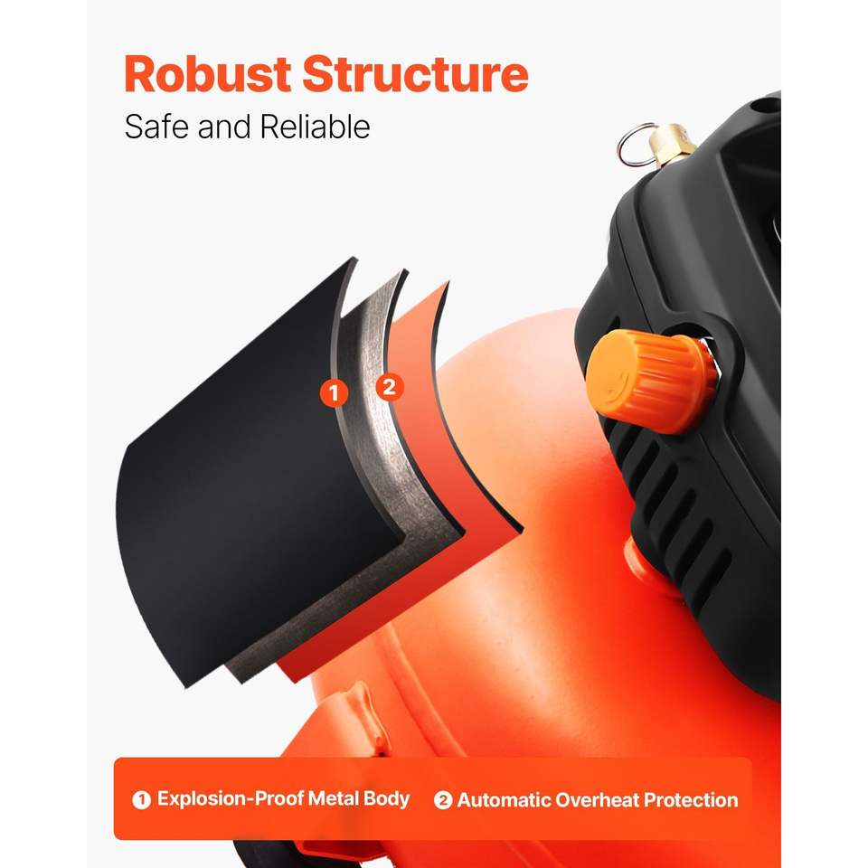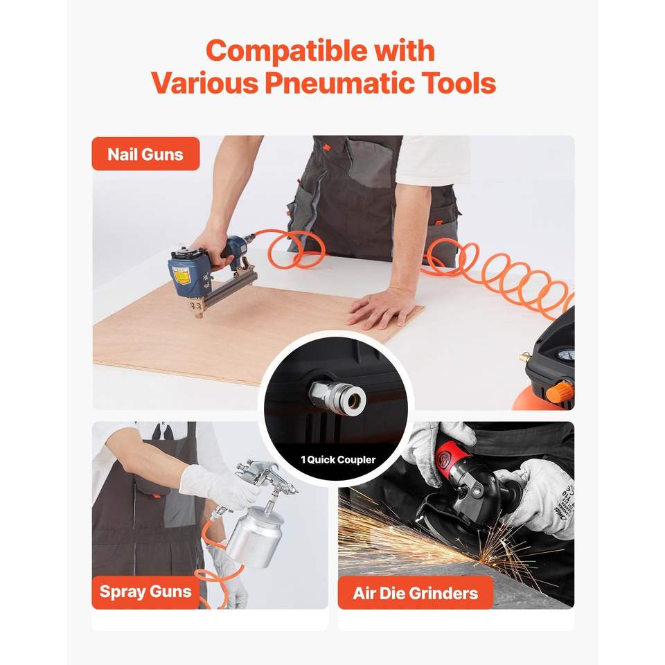Compressore d'Aria Portatile da 3 Galloni 1/3HP Senza Olio con Pressione Massima di Lavoro di 100PSI e 0.54CFM a 90PSI