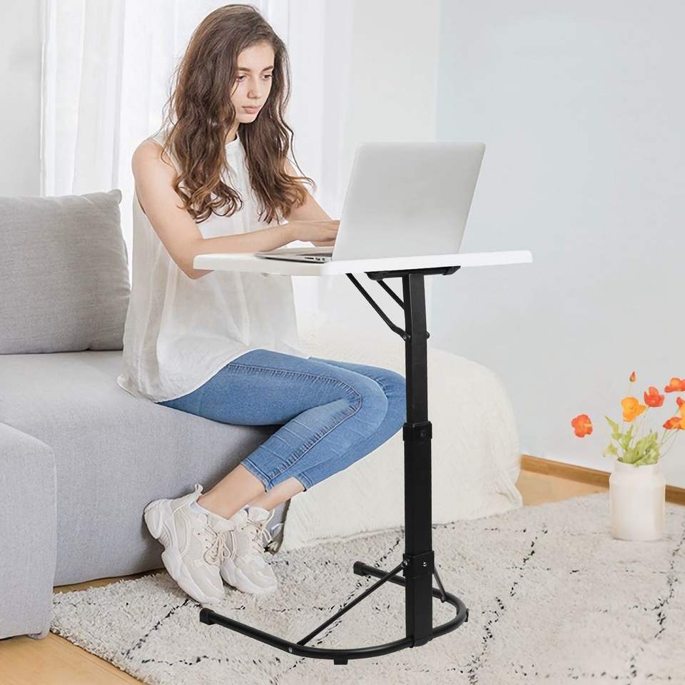 Tavolino Pieghevole Portatile a 3 Altezze a Forma di C, Scrivania Regolabile per Divano, TV e Laptop, per Pranzo e Caffè, Design Elegante e Confortevole