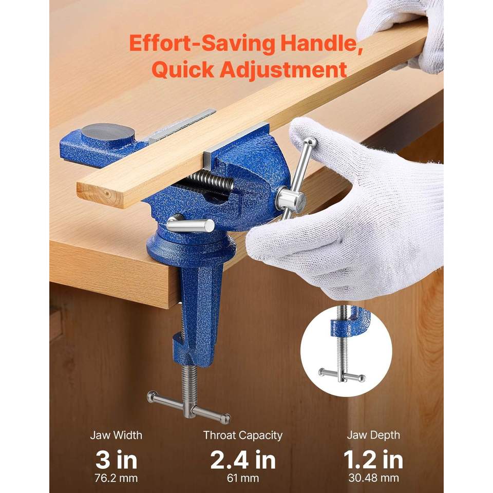 Morsa da banco portatile da 3 pollici con base girevole a 360 gradi e morsetto a sgancio rapido, base rialzata in ghisa
