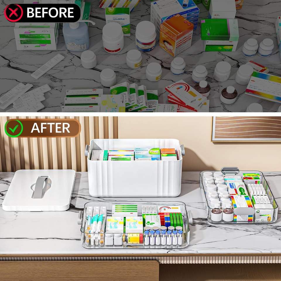 Organizzatore Portatile per Medicinali a 3 Livelli con Manico in Plastica, Contenitore Vuoto Multiuso per Pillole e Pronto Soccorso
