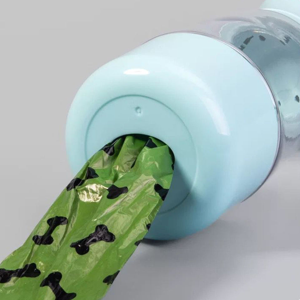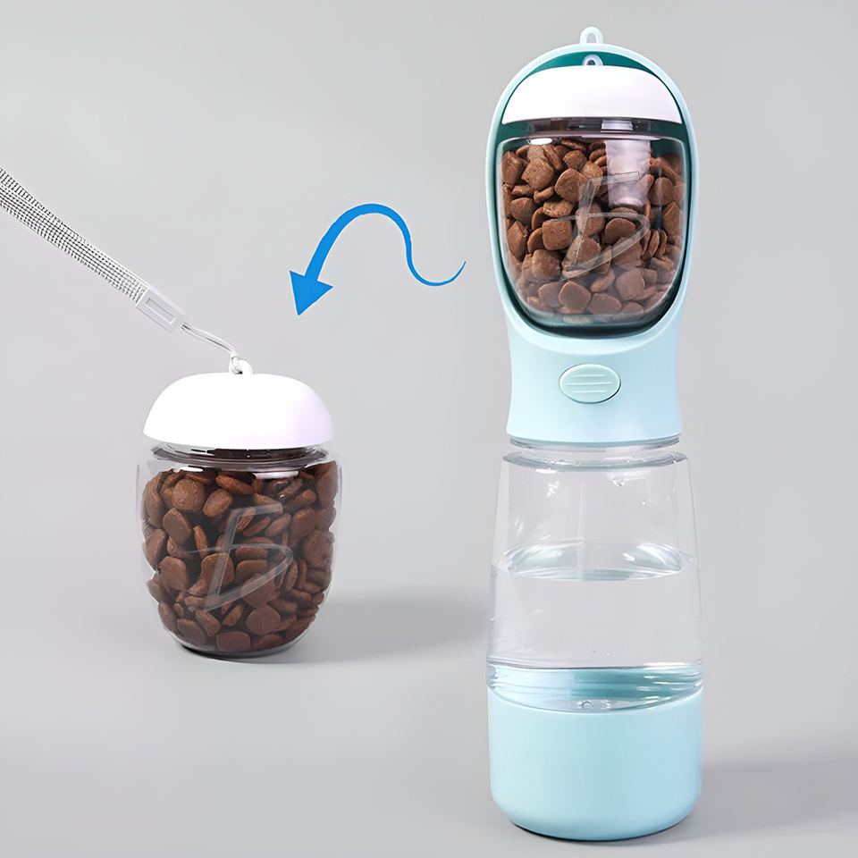 Bottiglia Portatile 3-in-1 per Cani con Ciotola Trasparente e Porta Borsa in Plastica per Accessori da Viaggio in Auto