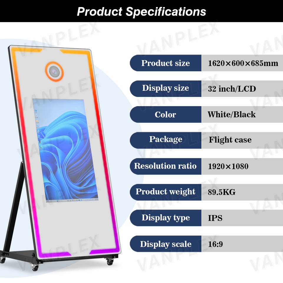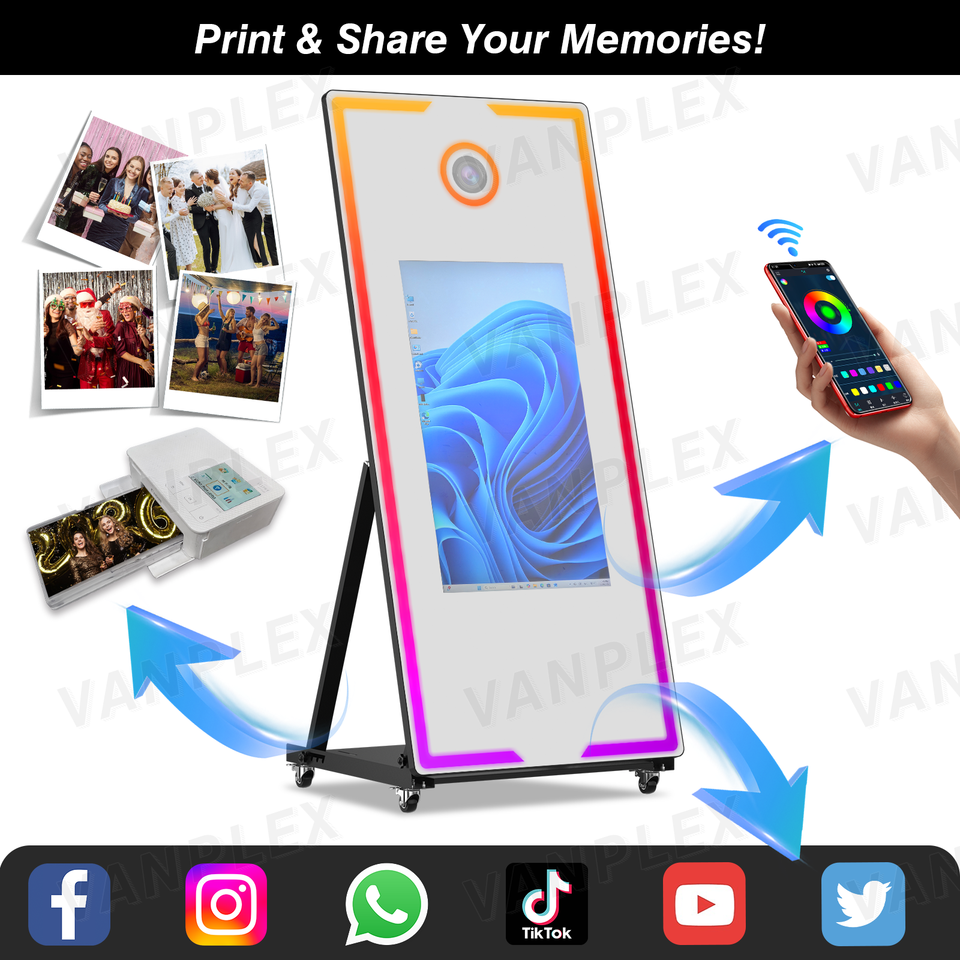 Kit Cabina Fotografica Selfie Portatile 32/43" Touch Screen con Flight Case - Include Fotocamera, Stampante, Wi-Fi e Struttura Metallica