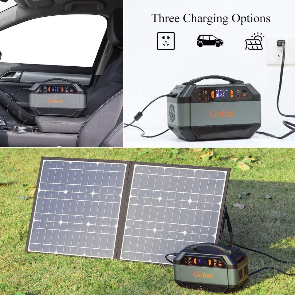 Stazione di Alimentazione Portatile 330W con Generatore Solare 299Wh, 2 Prese AC 110V, 4 Prese DC 12V, 4 Prese USB