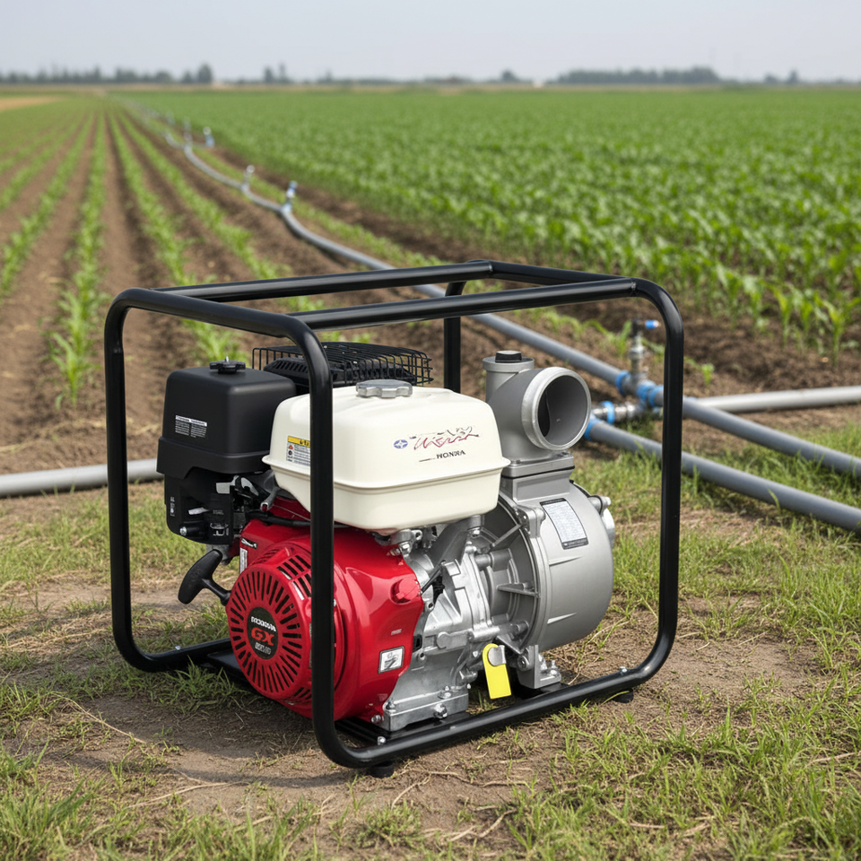 Pompa Portatile per Acqua Pulita da 4 Pollici, Prevalenza 38m, Alta Portata, Alimentata da Motore Honda GX390