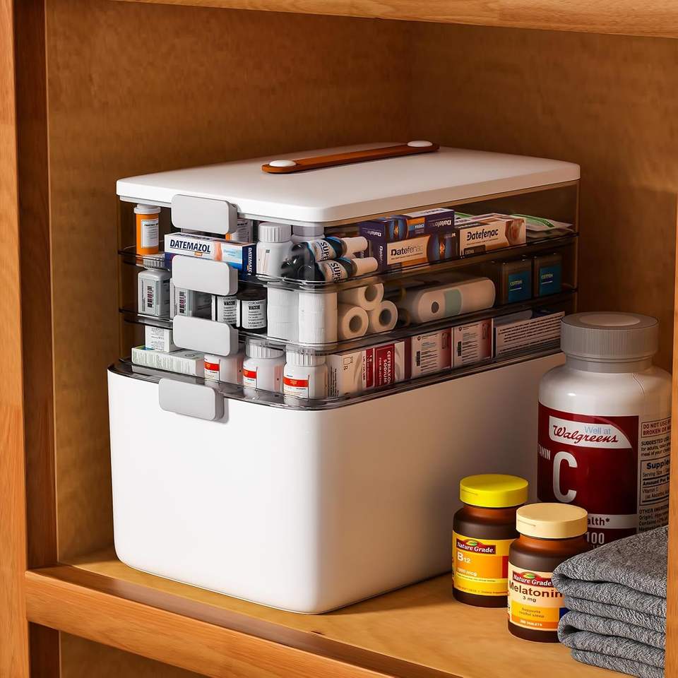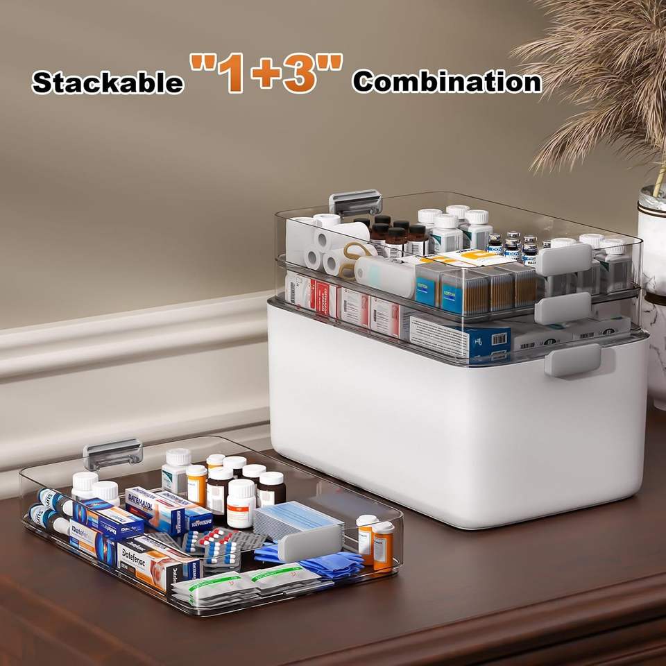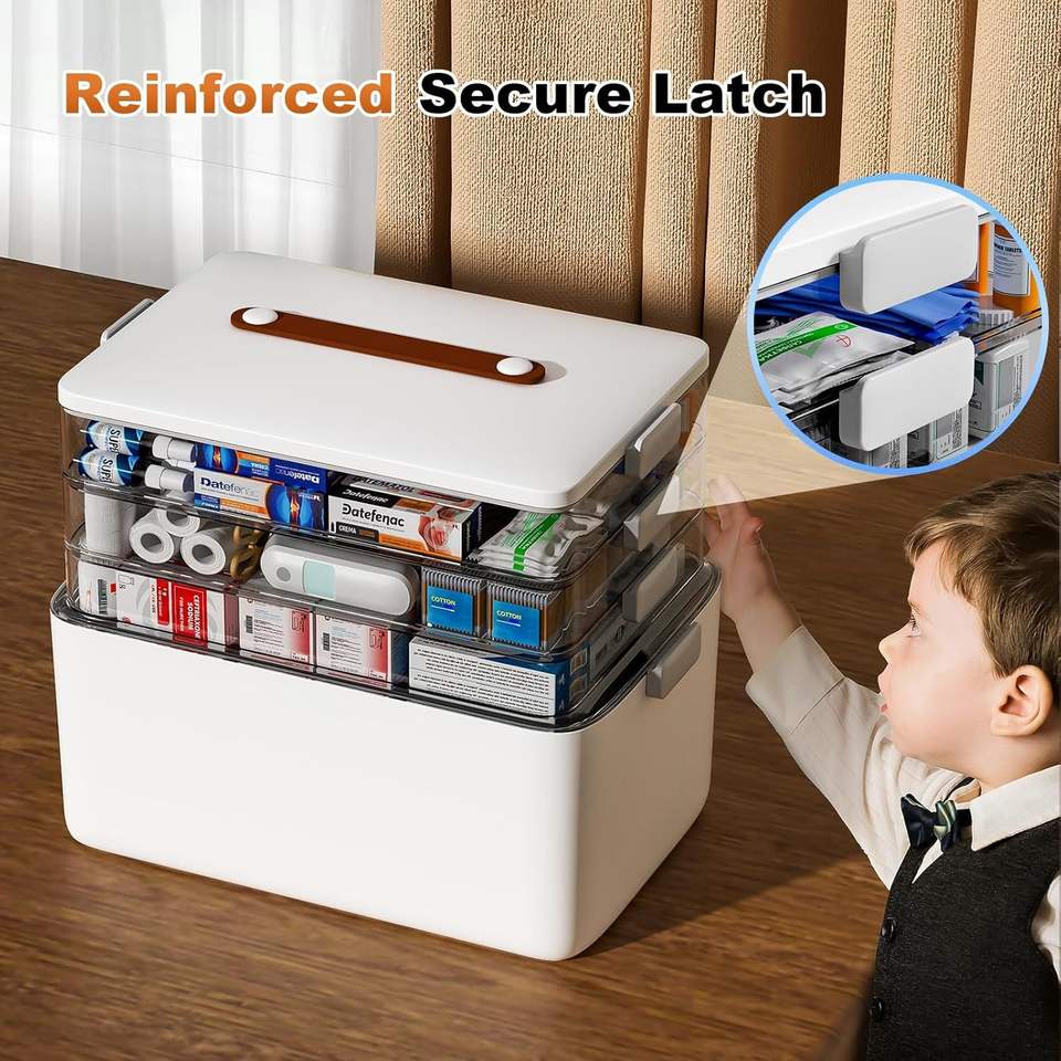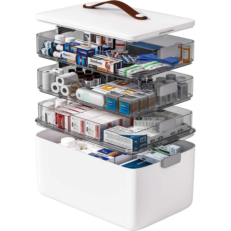 Organizzatore Portatile a 4 Livelli per Medicinali, Scatola Vuota con Maniglia per Kit di Pronto Soccorso, Contenitore Multiuso per Forniture Mediche