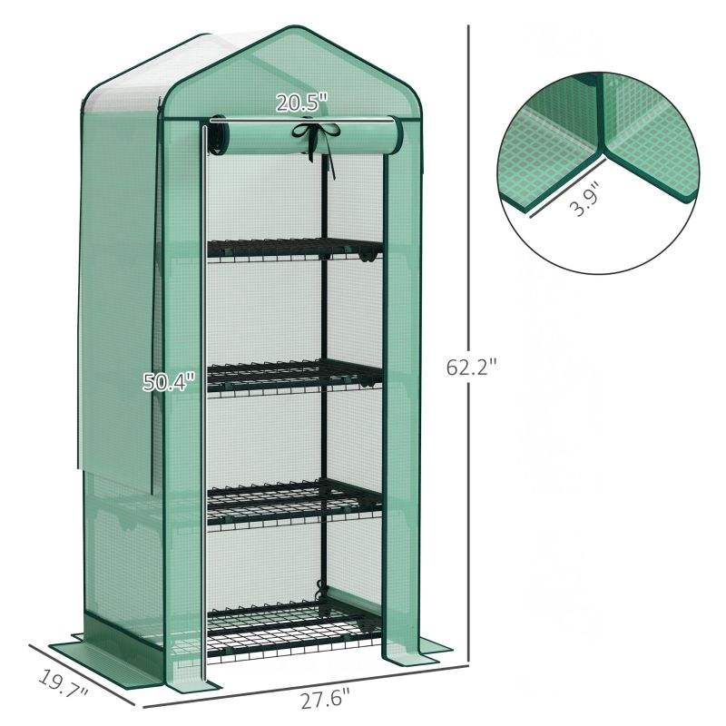 Mini Serra Portatile a 4 Livelli con Copertura in PE ad Alta Resistenza, Tetto Verde per Giardino