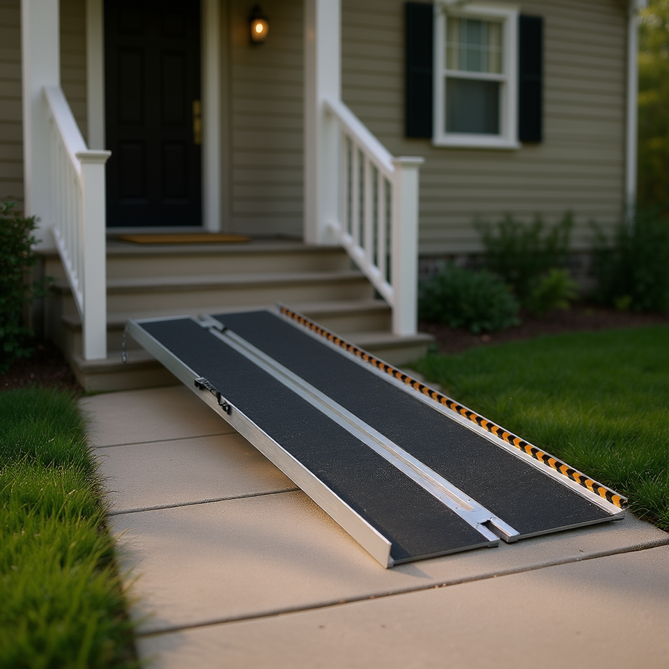 Rampa per sedia a rotelle in alluminio, 4 piedi, capacità 800 libbre, antiscivolo, pieghevole, per accesso alle scale di casa e mobilità